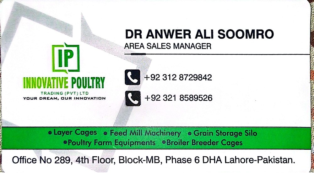 DR ANWER ALI SOOMRO AREA SALES MANAGER INNOVATIVE POULTRY TRADING (PVT) LTD