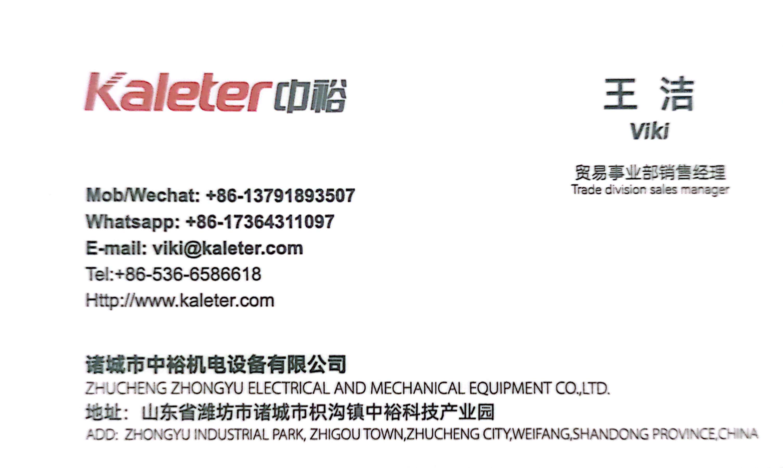 Viki Zhucheng Zhongyu Electrical and Mechanical Equipment Co.,LTD.