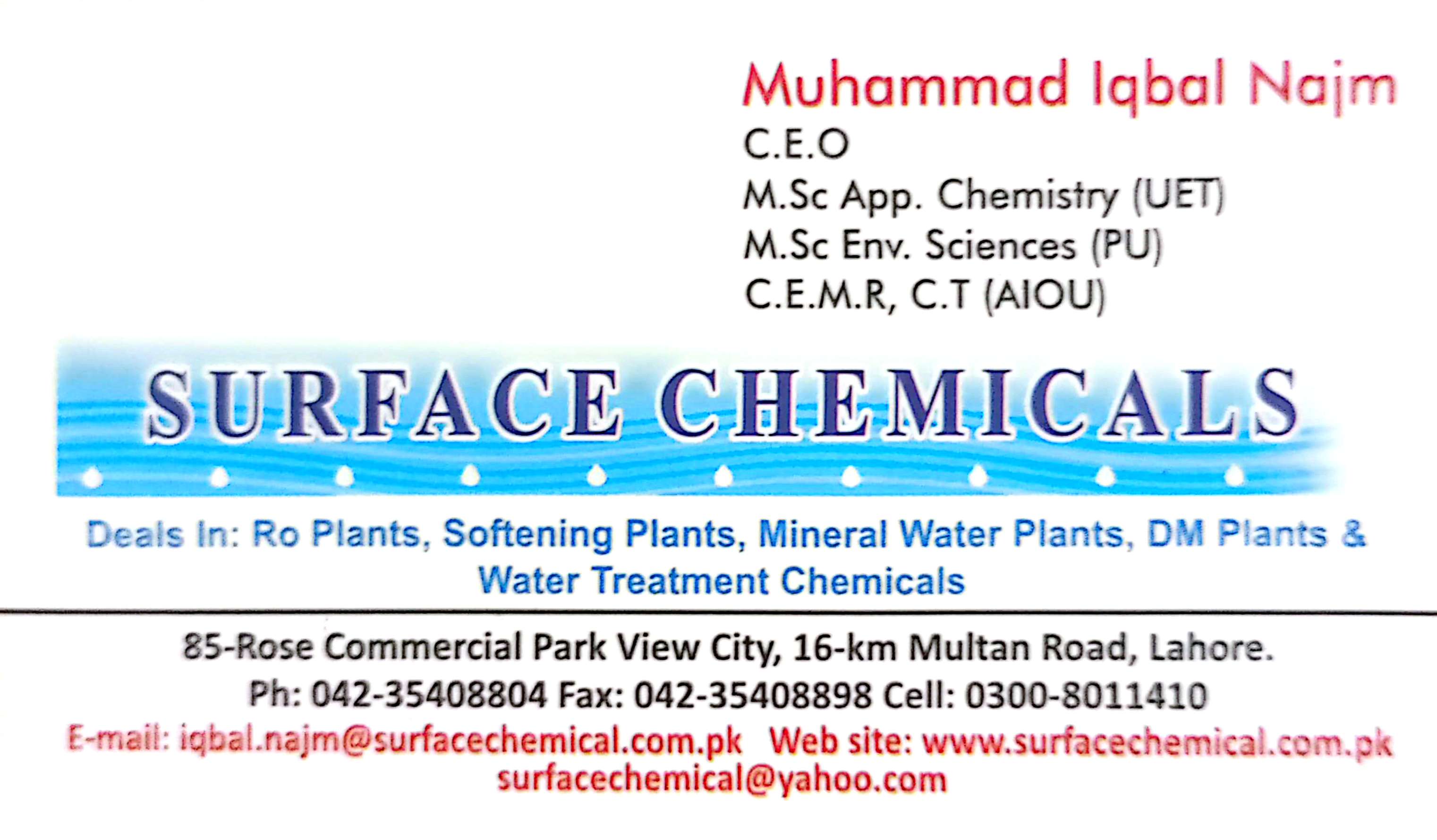 E-mail: iqbal.najm@surfacechemical.com.pk / surfacechemical@yahoo.com