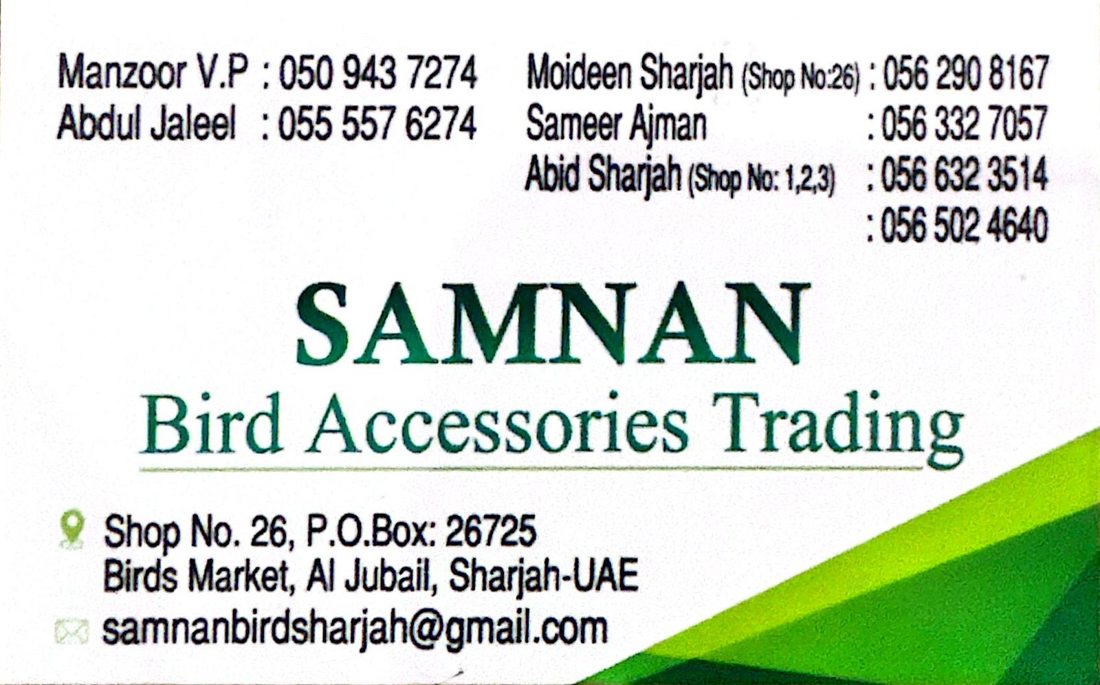 Moideen Sharjah (Shop No:26) : 056 290 8167