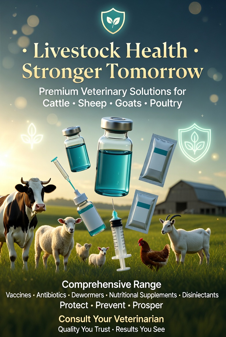 Meta Description: Buy livestock medicines in Pakistan for cows, buffalo, goats, and sheep. Bloat remedies, calcium supplements, and veterinary drugs. Trusted by farmers nationwide.